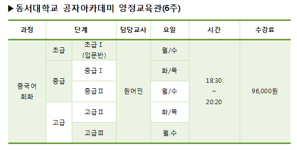 2. 양정교육관에서 진행하는 정규과정 중 중급회화3, 프리토킹은 인원미달로 폐강되었음을 알려드립니다.